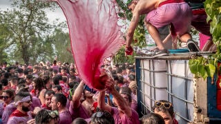 El objetivo de la 'batalla' es claro: manchar con vino tinto a los participantes hasta quedar completamente morados. Además, esta batalla se acompaña con un almuerzo y se finaliza con unas 'vueltas' en la plaza de la Paz, en la misma localidad de Haro.