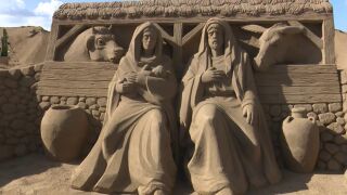 El Belén de Arena de Las Canteras, que ha sido inaugurado oficialmente, cumple 20 años y hace historia al protagonizar el décimo de Navidad.