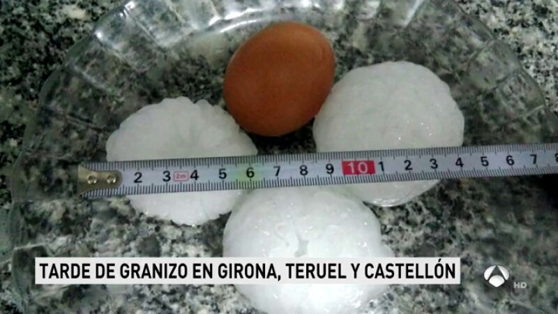 Había alerta por tormentas, agua y granizo, en 10 provincias y los avisos se han cumplido. En Teruel, Castellón o Girona, la lluvia y el granizo no han cesado en toda la tarde.
