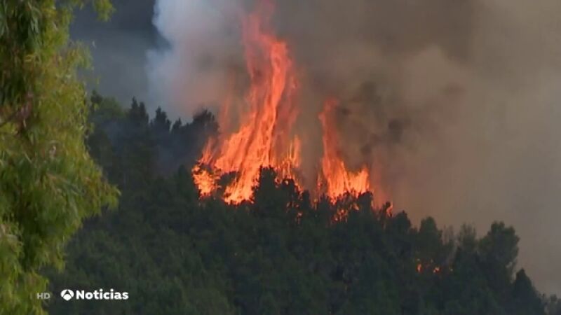 Los especialistas explican que está fuera de capacidad, esto esto significa que no se puede atajar ni por aire ni por tierra. Otro de los problemas a los que se enfrentan es el acceso a la zona. La única vía es a través de esta carretera que no tiene salida. Los servicios de extinción pueden quedar atrapados.