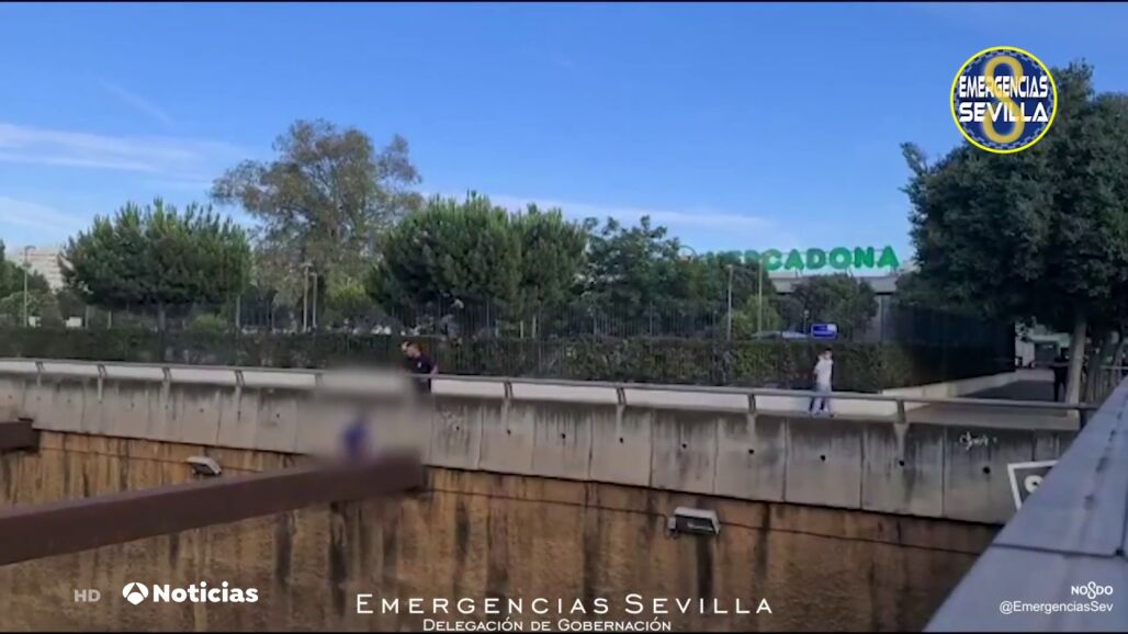 Gracias a un bombero del Ayuntamiento de Sevilla, que es psicólogo de formación, consiguieron convencer al hombre para que bajase de la viga sano y salvo.