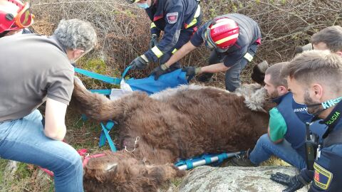 El equipo de emergencias comprobó que la burra, que tuvo que ser sedada antes ser transportada, estaba "muy exhausta" y no podía moverse