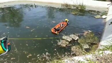 Los bomberos rescatan a 3 perros que se lanzaron a un estanque en Gran Canaria para refrescarse