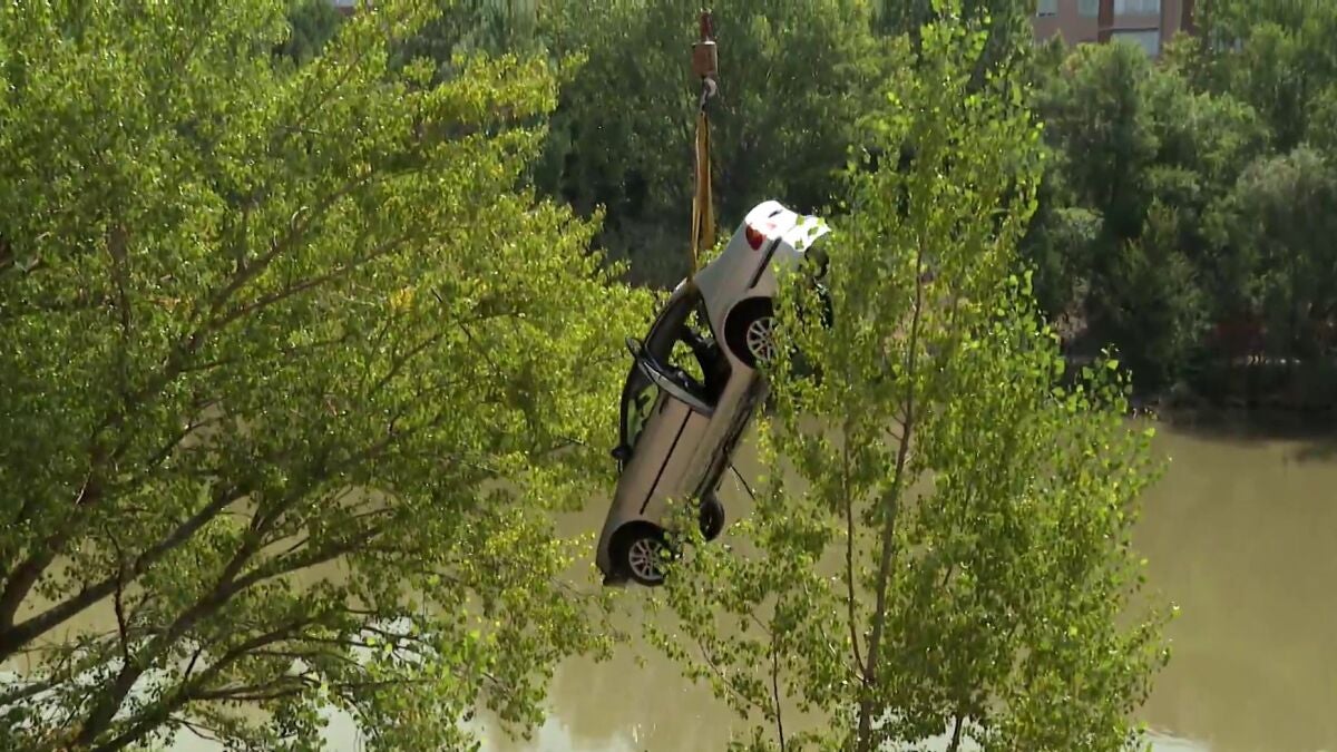 Los Bomberos rescatan el coche que cayó al Pisuerga a su paso por el Puente Mayor de Valladolid