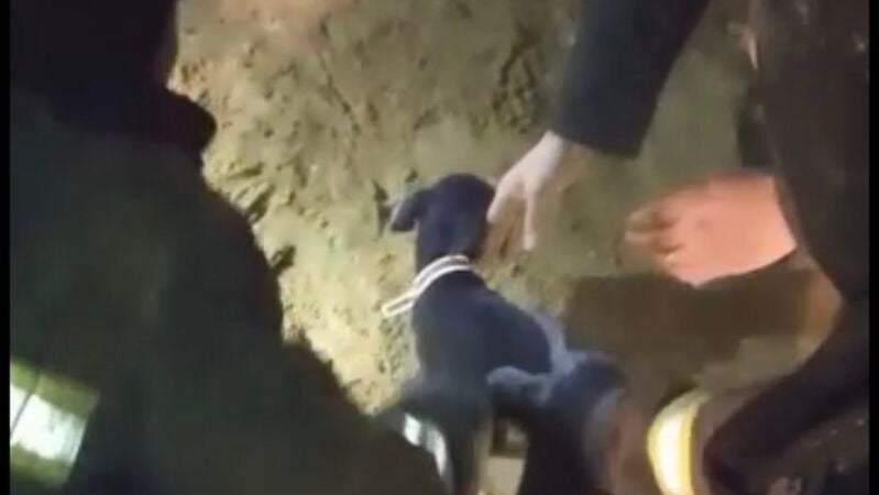 Los bomberos rescatan a un perro pequeño atrapado en una madriguera de conejo