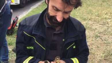 Los bomberos salvan a dos patitos recién nacidos que se habían caído a una alcantarilla en Madrid