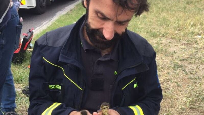 Los Servicios de Emergencias han compartido en Twitter el momento en el que los bomberos, junto a la Policía, rescatan a los patitos.