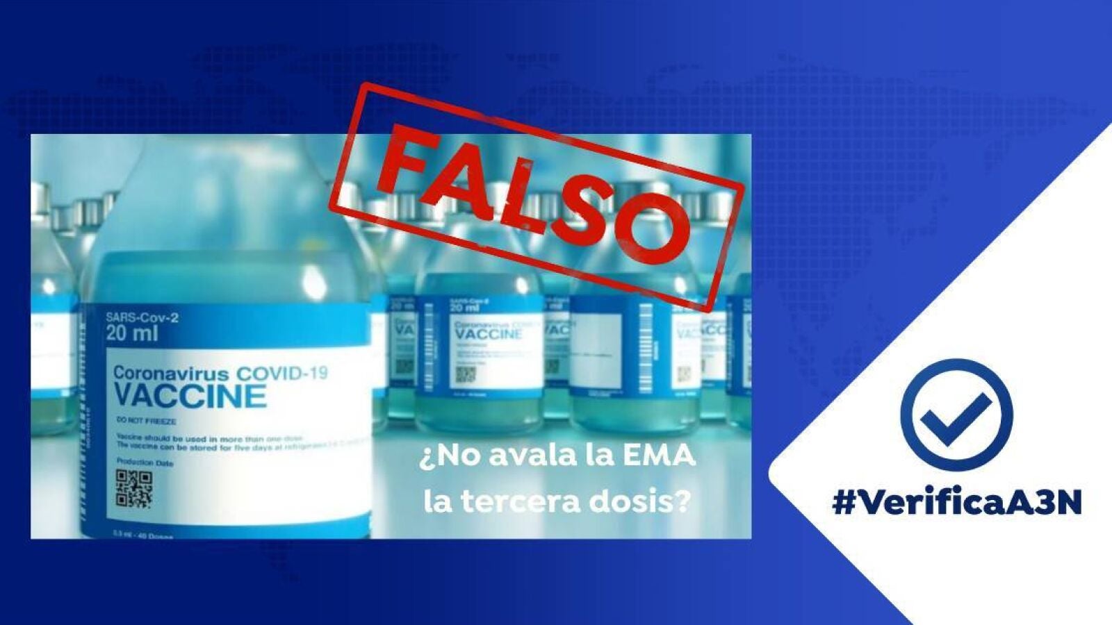 Es falso que la EMA haya dicho que las dosis de refuerzo de la vacuna contra el coronavirus debiliten el sistema inmunitario. Tampoco es cierto que no recomiende su administración como se asegura en diferentes mensajes compartidos en redes sociales.