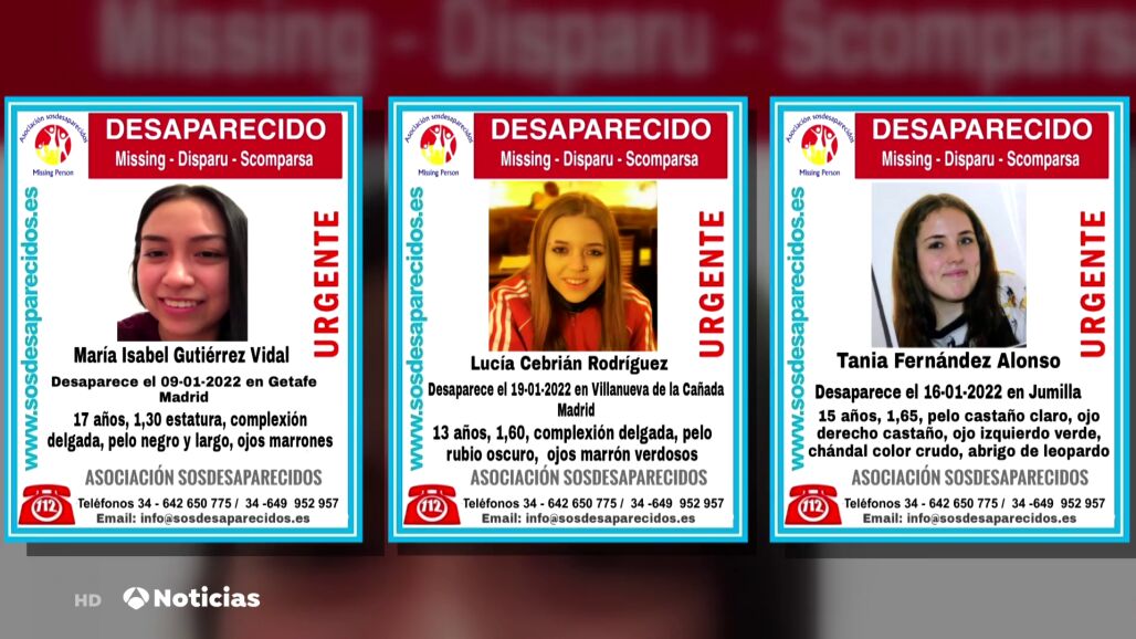 Las tres menores, de 13, 15 y 17 años, desaparecieron este mes de enero en diferentes días. Lucía y María Isabel desaparecieron en Madrid, mientras que Tania desapareció en Murcia.