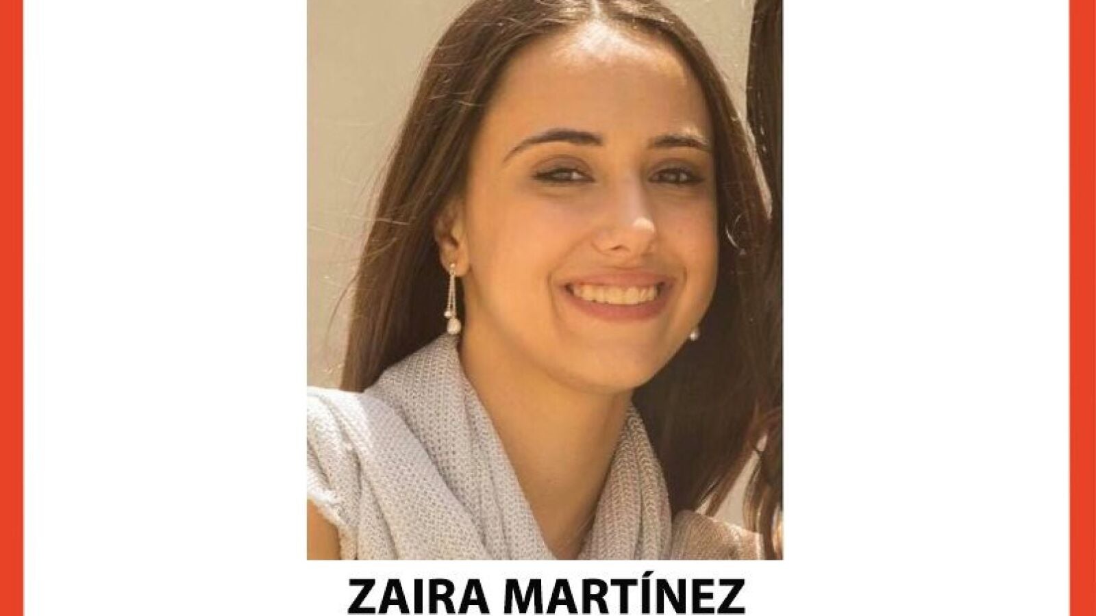 Zaira Martínez, de 18 años desapareció el pasado día ocho de diciembre. Vestía un pijama de pantalón rosa y chaqueta verde con unicornio. Fue vista por última vez cerca de la Ciudad de la Artes y las Ciencias, en el viejo cauce del río Turia.