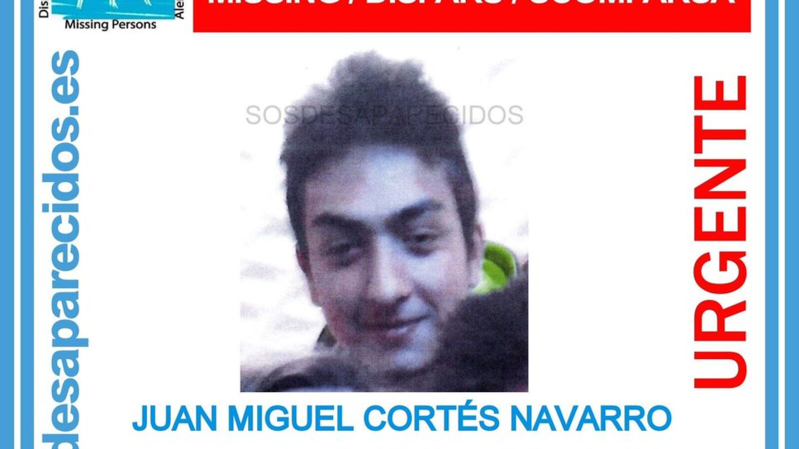 El joven desaparecido tiene una estatura de 1.60 metros, piel morena, de constitución delgada y con el pelo largo por la parte delantera y corta por detrás. El desaparecido presenta falta de audición en el oído izquierdo y por el derecho oye muy poco.