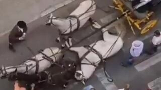 No hace ni un mes que se produjo un hecho similar en Palma de Mallorca cuando otro caballo cayó al suelo ante la mirada de los turistas, que seguían montados en la galera, mientras algunos viandantes pedían agua para el animal. "Qué desgracia, de verdad, pobre caballo. Y la gente en vez de bajarse...Pero bájense, ¿cómo no se van a bajar?", recriminaban los presentes.