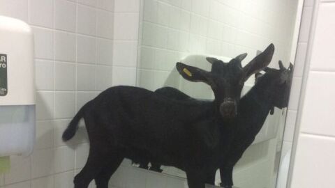 Los trabajadores intentaron movilizar a la cabra con la ayuda de varias sillas de ruedas, tras lo cual llamaron a la Policía Local que rescató al animal cuando estaba subido en uno de los lavabos.