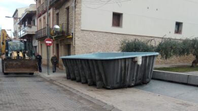 Una piscina de 21 metros cuadrados situada en la terraza de un edificio de diez metros de altura en la calle Industria de Les Borges Blanques (Lleida) ha caído como consecuencia del fuerte vendaval que azotaba la zona.