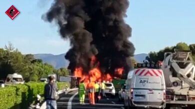 Un accidente registrado este martes en la A-7 se ha saldado con un muerto en el término municipal de Tibi (Alicante). Un camionero ha fallecidos después de que su vehículo volcase y posteriormente se incendiase, con el conductor atrapado en la cabina.