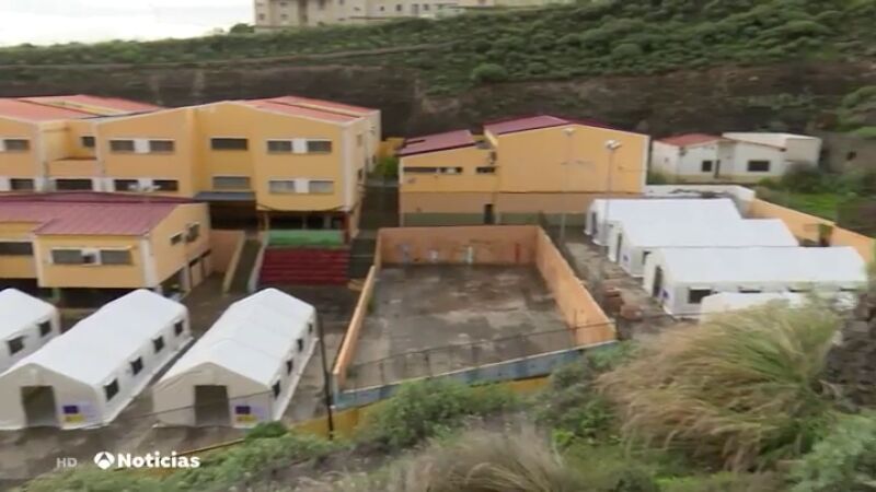 El Gobierno de Canarias ha instalado varias carpas con capacidad para acoger a 400 personas en un colegio en desuso.