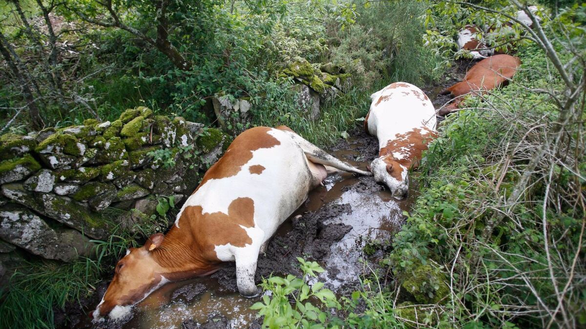 Creen que el rayo cayó sobre un transformador llevando la electricidad a la tierra y provocándoles la muerte en el acto. Este matrimonio de ganaderos de Rodeiro, en Pontevedra, han perdido su pequeña explotación en momento”.