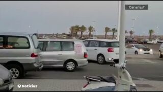 Unas 50 personas se concentraron en Arrecife, en Lanzarote, para protestas contra la obligación de usar mascarilla. Lo hicieron en coches, formando una pequeña caravana.
