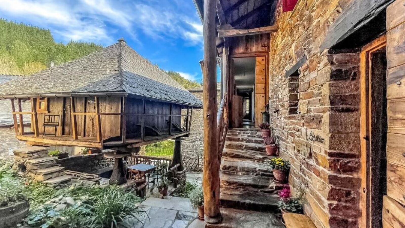 El complejo cuenta con seis espacios: unos apartamentos y una habitación que se encuentra en el interior de un hórreo reacondicionado. Además, cuenta con una pequeña huerta ecológica con animales para el autoconsumo propio. Todo un ejemplo de emprendimiento en medio de la España vaciada.