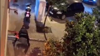 Los fuertes golpes alarmaron a los vecinos, uno de ellos no dudó en sacar su móvil para grabar lo que estaba pasando. Tras esos golpes aparecieron dos personas que salían a toda prisa del local y que iban ataviados con cascos de motos en su cabezas para no ser reconocidos.