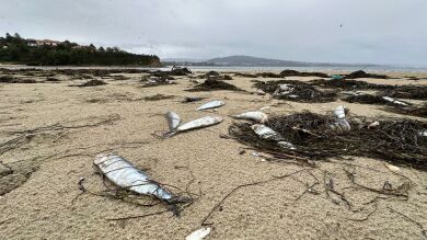 Centenares de sardinas muertas aparecen en una playa de la localidad coruñesa de Ares