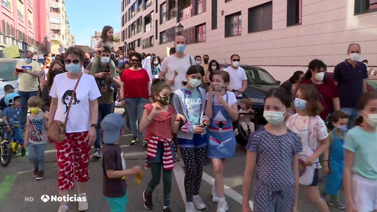 Cientos de vecinos protestan contra 12 cocinas industriales pegadas a un colegio público en el centro de Madrid