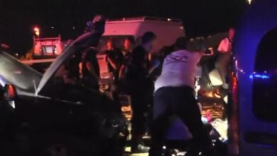 Los gritos de los atrapados entre los restos del coche, cinco hombres y dos mujeres, todos subsaharianos, han alertado a los vecinos. Por su parte, el responsable del siniestro se ha dado a la fuga y las autoridades ya le buscan.