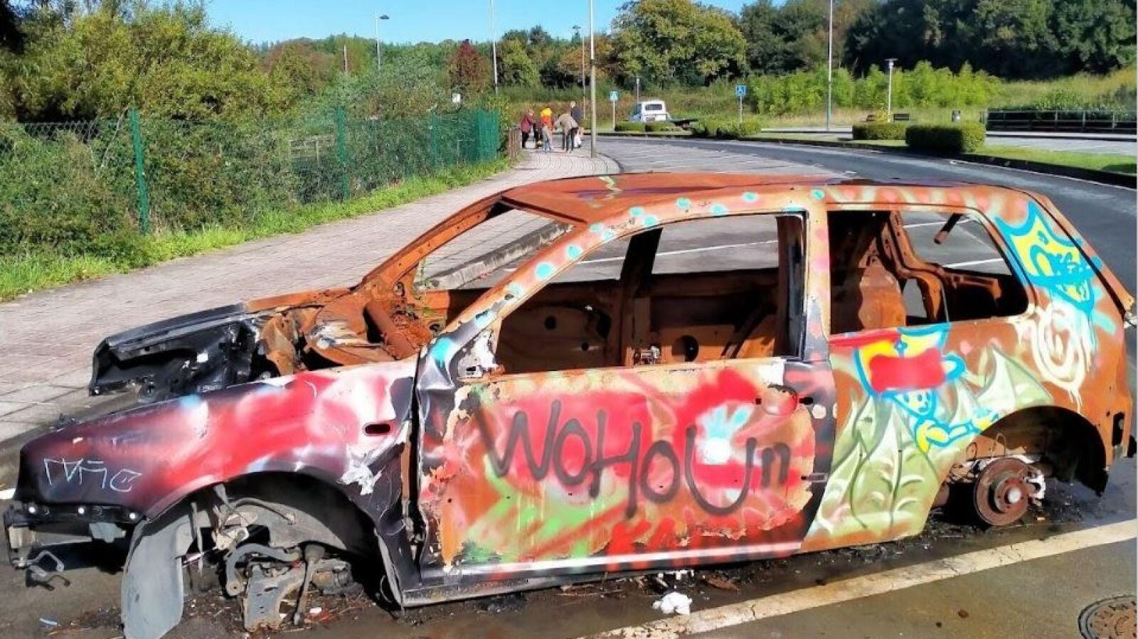 Se trata de un vehículo abandonado que se encuentra en Valdecorvos, en Pontevedra, lleno de grafitis en su exterior y de basura, y restos de envases de comida rápida, dentro. Pese a que los vecinos de la zona han pedido su retirada en multitud de ocasiones, el Ayuntamiento no puede deshacerse de él: el juzgado de Pontevedra lo mantiene catalogado como una prueba en una causa judicial abierta.