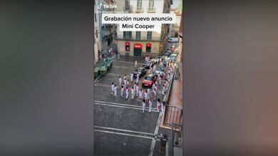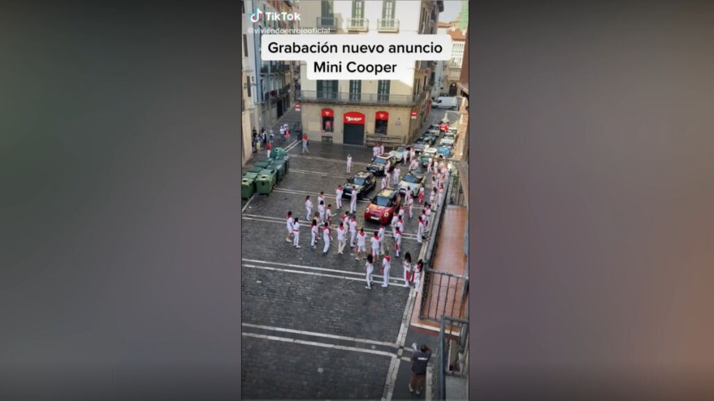 Desde un balcón de una calle de Pamplona, un usuario de TikTok muestra a sus seguidores el 'making of' del rodaje del próximo anuncio para la marca de coches Mini. En el vídeo, pueden verse los momentos previos a que el director grite "acción", cuando los figurantes comienzan a correr, como si se tratase de un encierro de San Fermín, en el que los coches son los toros.