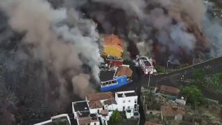 Un dron ha grabado el paisaje de destrucción y caos que la colada de lava del volcán de La Palma sigue dejando por donde pasa.