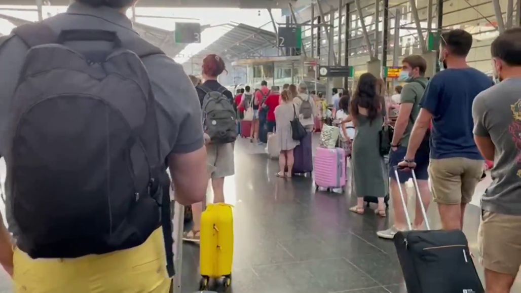 Colapso en la estación de tren de Málaga con los pasajeros sin poder guardar la distancia de seguridad