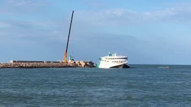 Comienzan a descargar los vehículos del interior del ferry encallado en Dénia