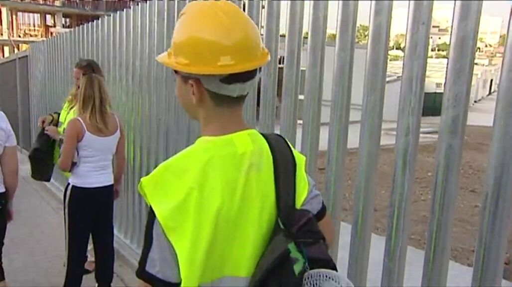 Los niños han tenido que acudir con casco de obra y chaleco reflectante.
