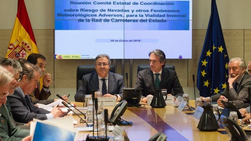 Mientras, esta misma tarde, y convocado por el ministro del Interior, Juan Ignacio Zoido, se ha reunido el Comité Estatal de Coordinación para analizar las actuaciones llevadas a cabo por parte de los organismos y empresas implicados durante el temporal de nieve que azota la península. Con la asistencia del responsables de Tráfico, de la Guardia Civil, de Carreteras, de Protección Civil y Emergencias, de la Unidad Militar de Emergencias (UME) y de la AEMET, el Comité ha estudiado la aplicación de medidas para flexibilizar, agilizar y reforzar la respuesta cuando se bloqueen carreteras por temporales.