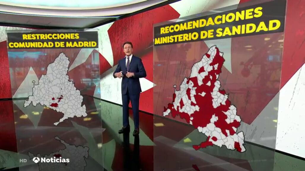 La diferencia de criterio entre unos y otros queda evidente en sus propuestas de confinamiento. Mientras que la Comunidad impone restricciones en 45 zonas. El Ministerio propone más de 200 zonas donde se superan los 500 casos por 100.000 habitantes.