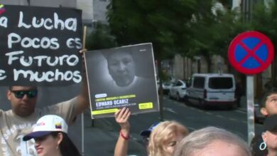 La plataforma 'Venezolanos en Bilbao – Bizkaia' se ha concentrado frente al consulado de la capital vizcaína para denunciar la falta de "respeto a los derechos humanos, la libertad y la democracia" que se vive en su país de origen, además de reivindicar la victoria de Edmundo González. Han reclamado la intervención de la cónsul de Venezuela en Bilbao, Glenna Cabello, hermana del ministro de interior venezolano Diosdado Cabello, para que "llame a su hermano" y asuma las consecuencias del "secuestro fruto del terrorismo de estado" por el que los dos ciudadanos vizcaínos están retenidos. Han recordado el "compromiso moral" que tiene la cónsul con los bilbaínos y el País Vasco por su cargo.