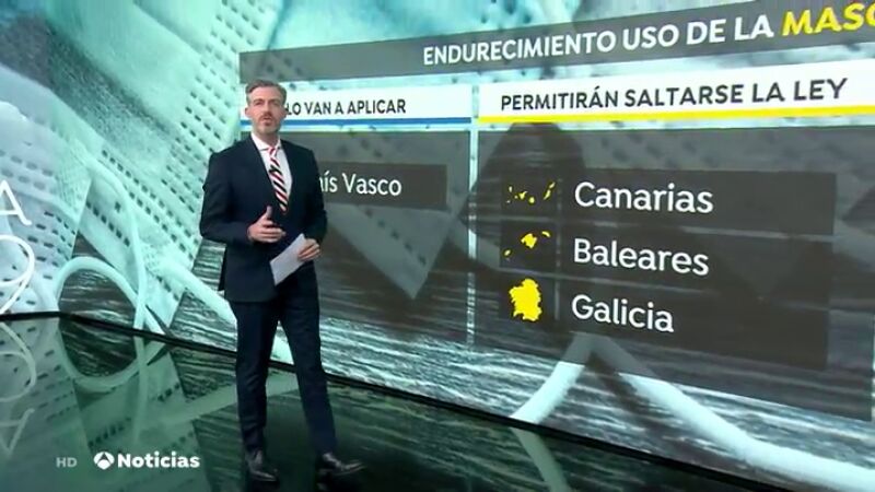 Además de las Islas Canarias, el archipiélago Baleartambién ha afirmado que no aplicará la nueva ley. Galiciatambién se suman a los dos archipiélagos y aseguran que la ley de las mascarillas seguirá como hasta ahora.