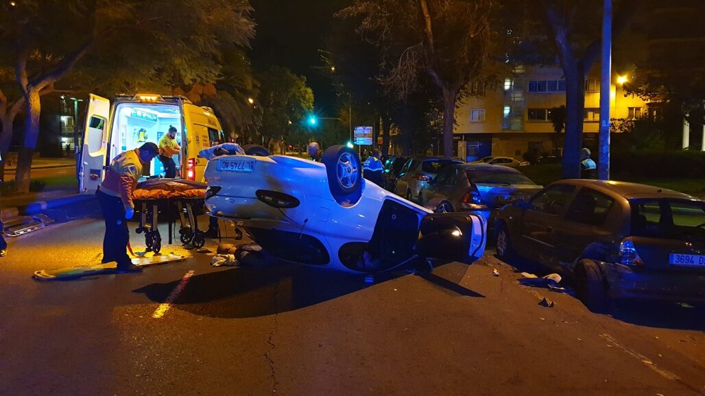 El vehículo del conductor ha quedado volcado, y además, ha causado daños a otros cuatro coches. El hombre, que presentaba síntomas de ir con la influencia del alcohol, no ha sido posible que le realizaran las pruebas de alcoholemiaen el momento del accidente debido a su estado.