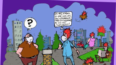 Con un toque de humor, nuestro ilustrador Alfredo Boto-Hervás ha reflejado en la viñeta gráfica de esta semana cómo está siendo el confinamiento por coronavirus en algunos barrios de Madrid.