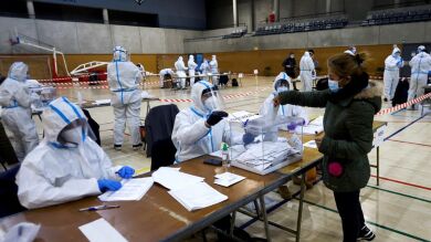 La baja afluencia de votantes marcó las elecciones catalanas en los colegios electorales. En los centros de votación de Barcelona, Girona o en Sabadell, los miembros de las mesas siguieron el protocolo de recibir a los votantes con los trajes EPIs que facilitó la organización, además de guantes, gafas y viseras transparentes, para evitar al máximo cualquier tipo de contagio.