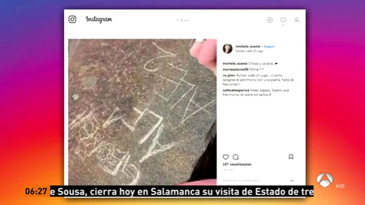 Una estudiante italiana grabó su nombre y el de dos amigas en la muralla romana de Lugo y compartió en sus redes sociales el momento. Seguidamente comenzaron a lloverle críticas, por lo que decidió borrar la publicación. La muralla de Lugo es la mejor conservada de España.