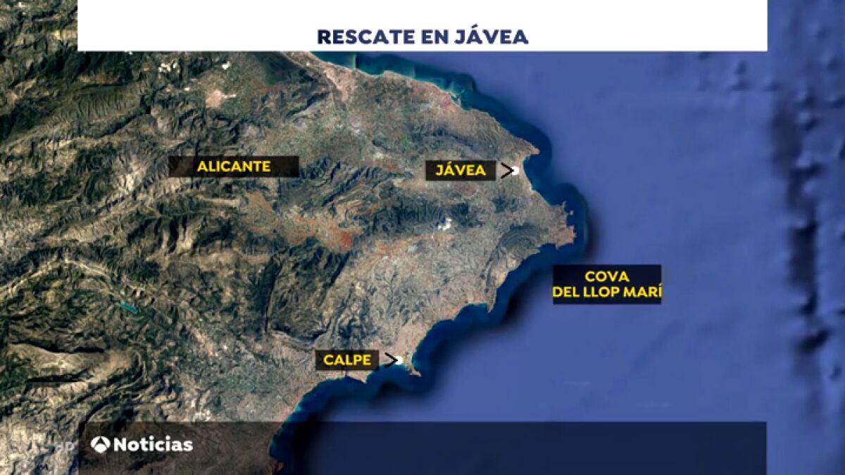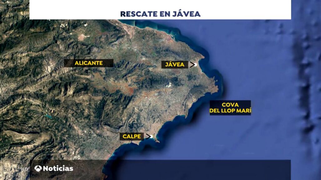 Intentan rescatar a 21 personas atrapadas en una cueva marina en Jávea, en Alicante