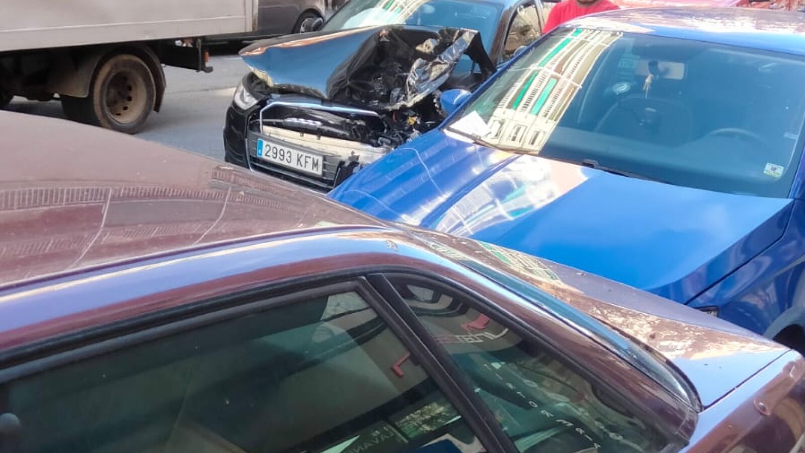 El cura chocó primero contra un coche y, seguidamente, contra otro turismo aparcado cerca de un garaje y provocando un efecto dominó que terminó causando daño a cinco vehículos, incluido el suyo. "El ruido fue tan grande que salí rápidamente del bar", nos comenta un vecino que estuvo presente ese día.