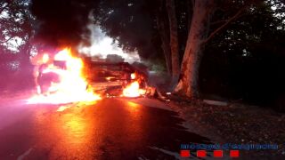 La detención se produjo tras un aviso de que se acababa de producir un accidente de tráfico en la carretera de Palol y que el vehículo causante había huido. Cuando llegó la patrulla, en el lugar había dos jóvenes con diversas contusiones leves y un vehículo ardiendo, que quedó totalmente calcinado.