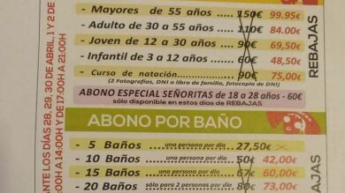 En concreto, el folleto informa de rebajas en las tarifas de la próxima temporada aplicables durante los últimos días de abril y primeros de mayo, cuando se pueden adquirir a menor precio abonos familiares, por baño e individuales. En este último apartado es donde figura la oferta que ha dado lugar a la polémica.