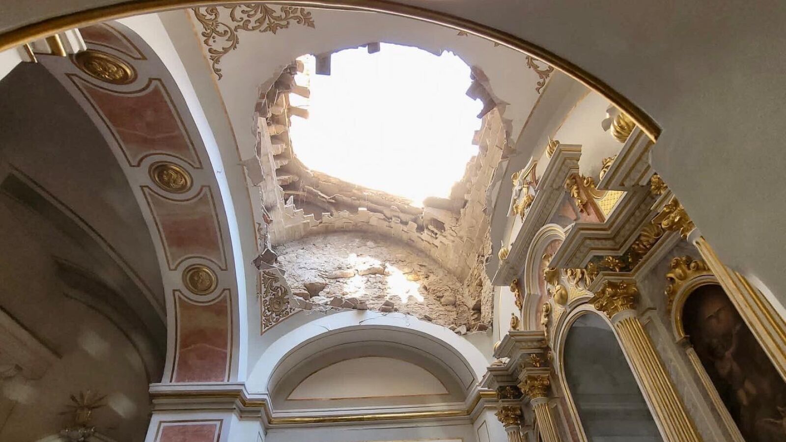 Hasta el lugar se han desplazado los agentes, junto a técnicos del Ayuntamiento municipal, para acordonar la zona y realizar una primera evaluación de daños y riesgos. Pocos minutos después del primer desprendimiento, se ha producido un segundo derrumbe que ha dejado sin techo la cúpula de la iglesia.
