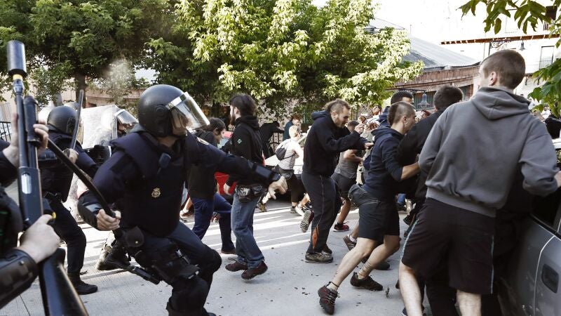 Llevaba ocupado desde septiembre de 2017 y los okupas se han enfrentado a la Policía Foral. Los incidentes por las calles se han prolongado durante seis horas.