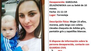 Una joven de 23 años y su bebé de 10 meses han sido localizados. Estaban siendo buscados por los agentes de seguridad desde que este jueves desaparecieran y no se supiera nada de ellos desde que su pulsera telemática emitiera una señal hacia las 3 de la tarde en la estación de autobuses de Torrevieja, Alicante.