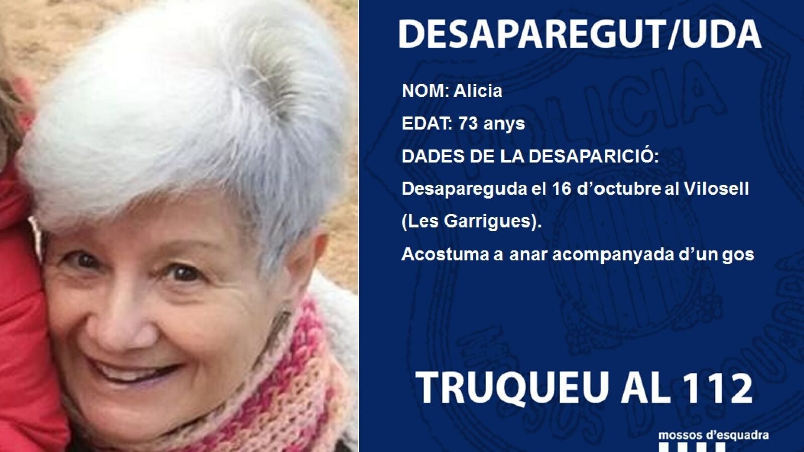 Alicia, madre del político catalán y primer teniente de alcalde del Ayuntamiento de Barcelona, Jaume Collboni, había desaparecido en la zona del Vilosell, Lleida, después de salir con su perro y no haber regresado a casa.