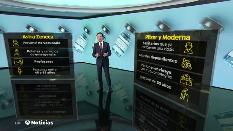 En cambio, la vacuna de AstraZeneca será utilizada para el personal sociosanitario que no se ha vacunado hasta el momento. También será destinada a policías, servicios de emergencia y a personas de entre 45 y 55 años en general.